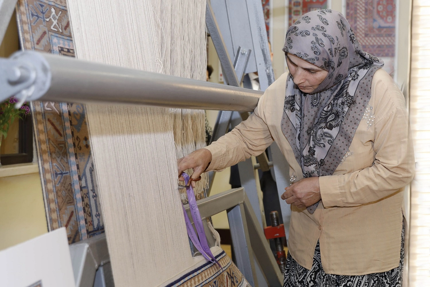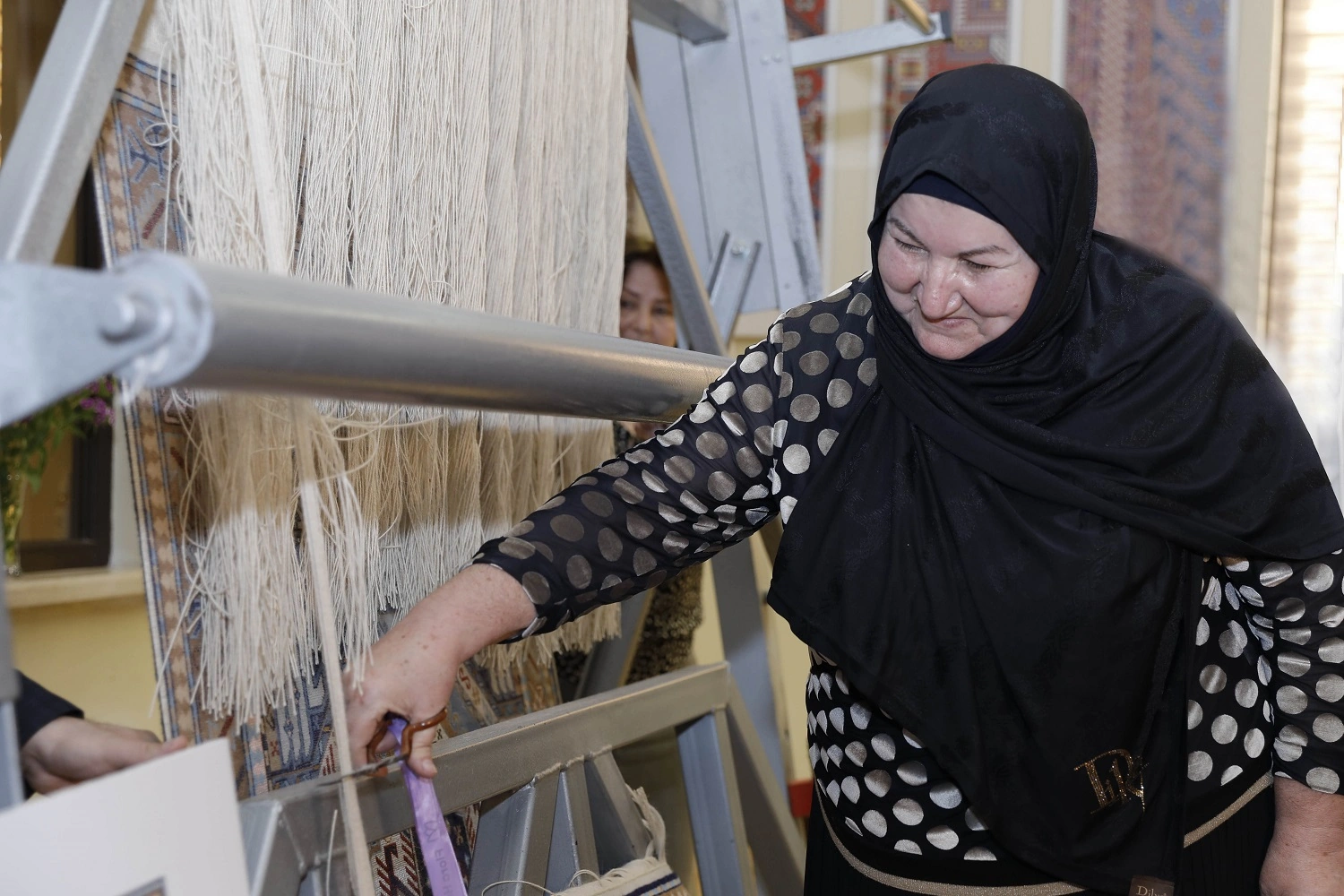 Daha sonra xalçaların kəsim mərasimi keçirilib.