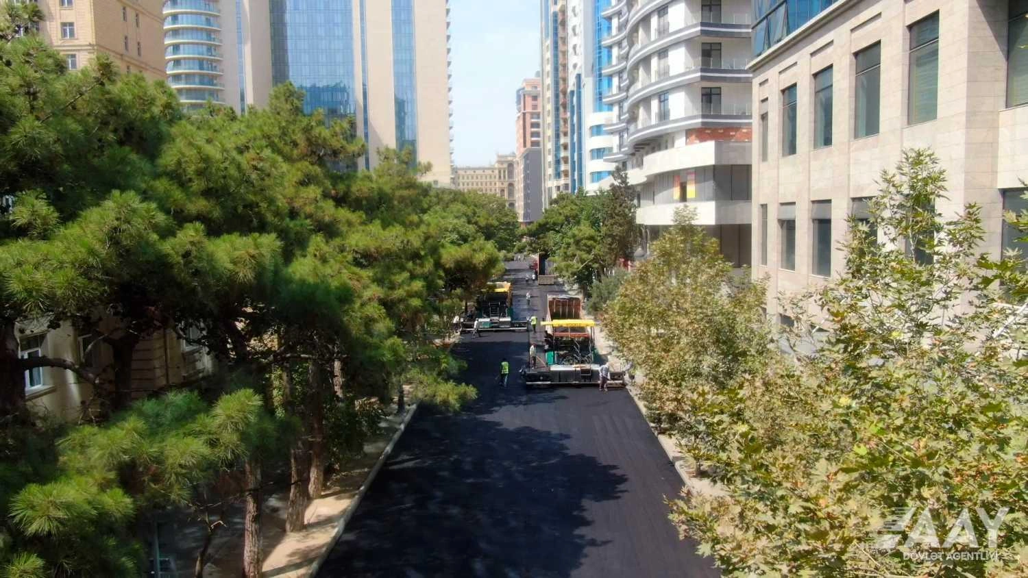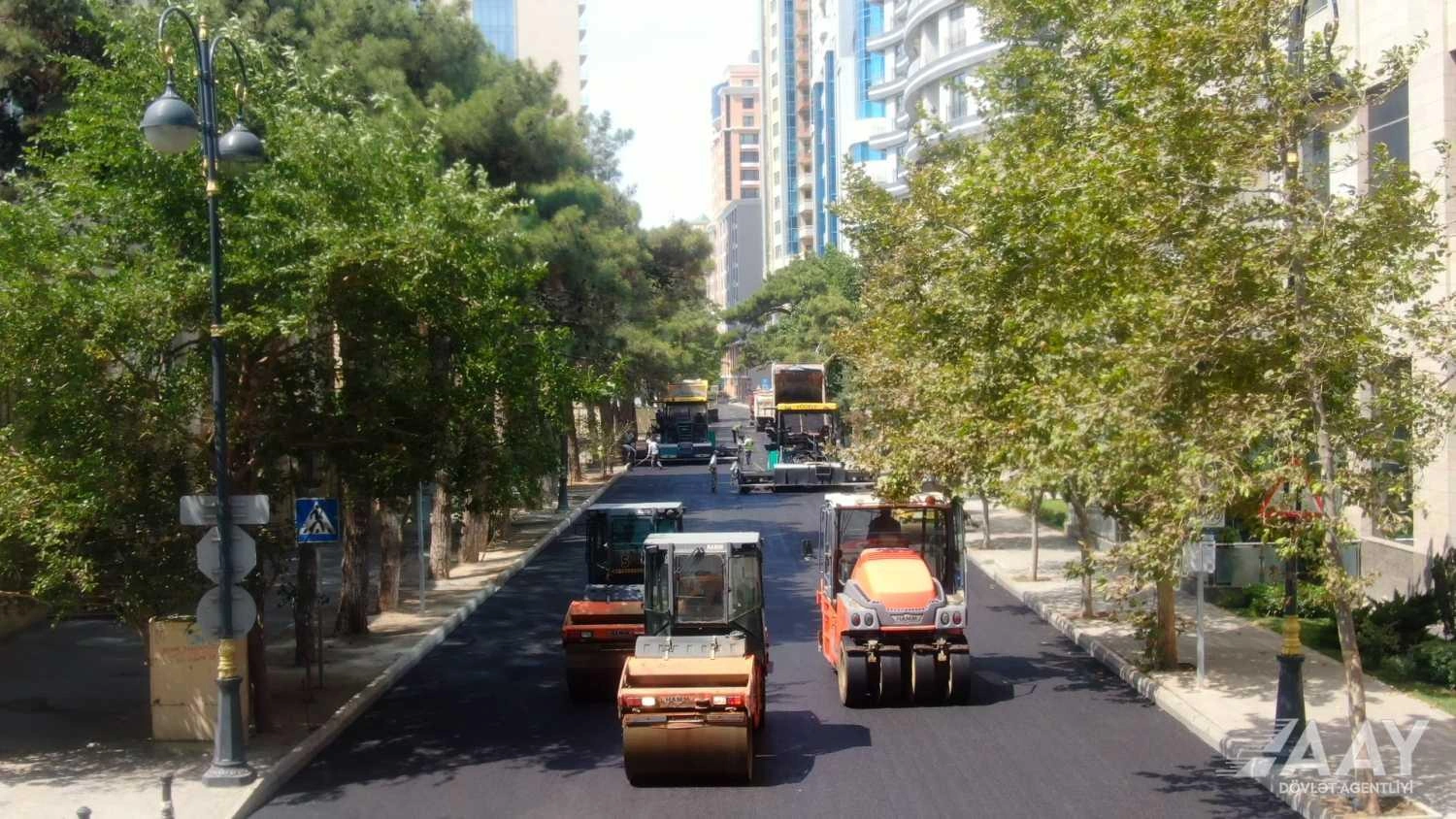 Bakının Zərifə Əliyeva küçəsində asfaltlanma işləri aparılır - FOTO/VİDEO
