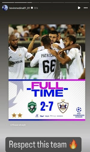 "Qarabağ"ın futbolçusu Kevin Medina Bolqarıstanda "Ludoqorets"ə əlavə vaxtda 7:2 hesabı ilə qalib gəldikləri UEFA Çempionlar Liqasının III təsnifat mərhələsinin cavab matçını dəyərləndirib.