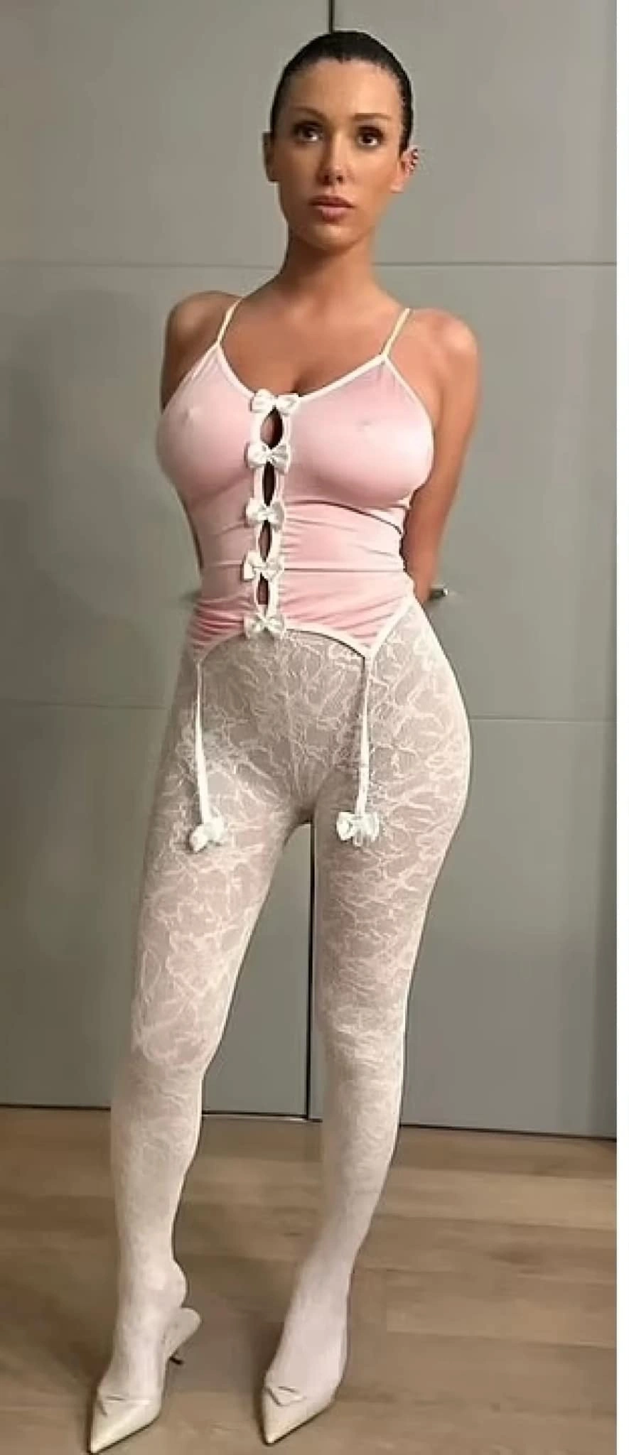 Onun geyimi Biankanın sevdiyi cəsarətli bədən kostyumu və tayt kombinasiyalarına çox bənzəyir. Ancaq Sensori alt paltarı olmayan çılpaq sinəsini şəffaf parçalar altında ortaya qoyursa, Kardaşyan, o qədər riskə getməyib və alt paltarına diqqət yetirib.