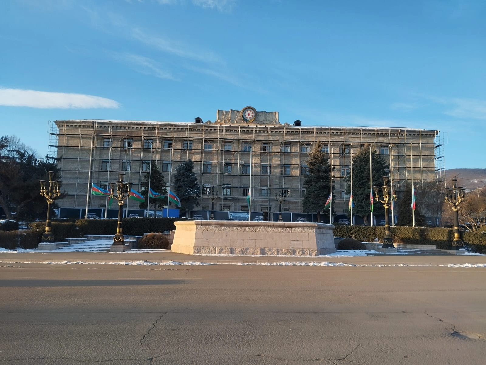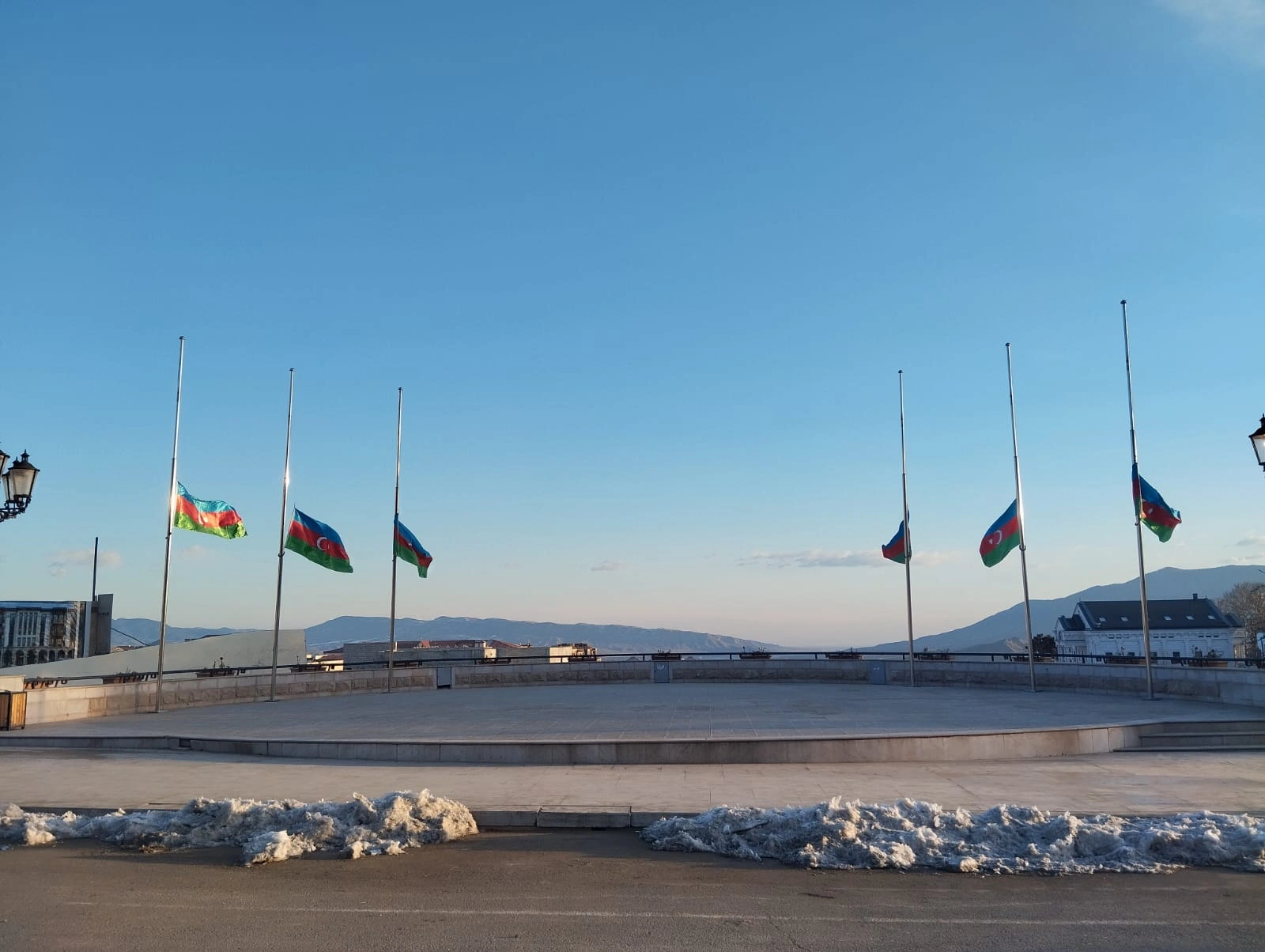 Xocalı soyqırımının 33-cü ildönümü ilə əlaqədar Xankəndi şəhərində, Xocalı və Ağdərədə dövlət orqanlarına məxsus inzibati binaların qarşısında ucaldılan dövlət bayrağımız yarıyadək aşağı endirilib.
