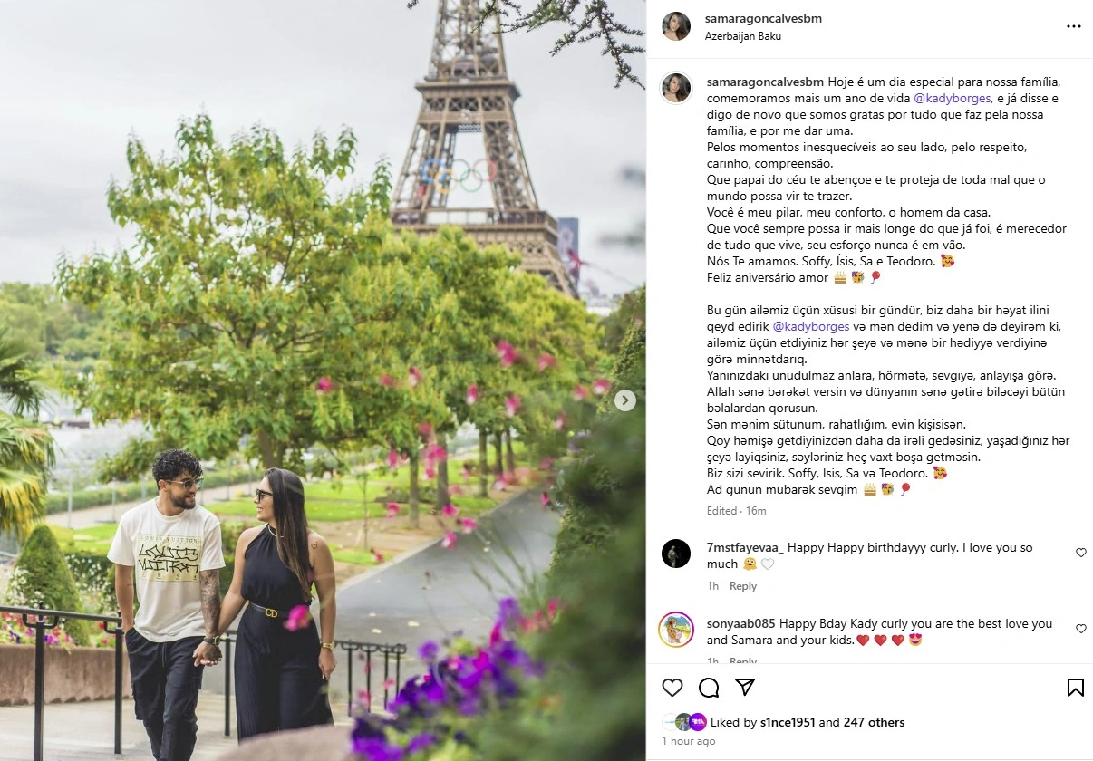 Gundem.az xəbər verir ki, bununla bağlı onun xanımı Samara Qonçalveş instaqram hesabında paylaşım edib.