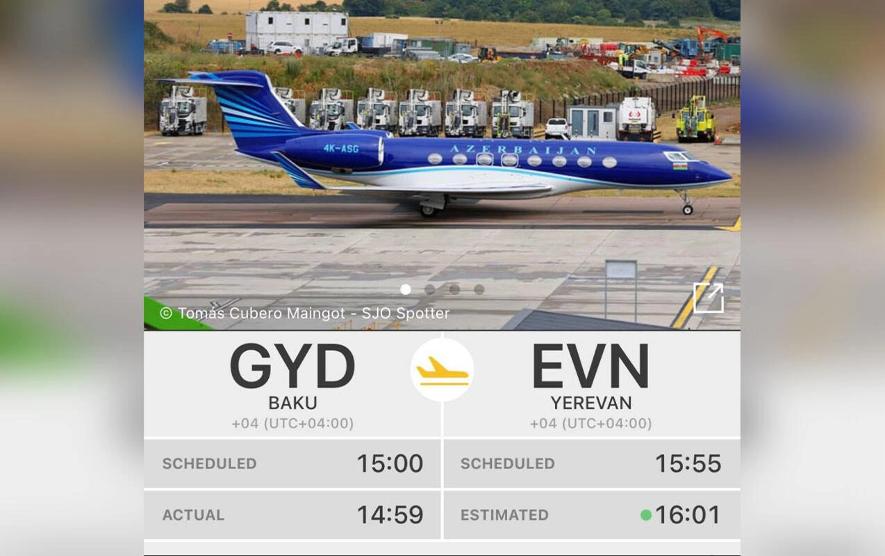 Hadisə ilə bağlı "Sputnik Ermənistan" da məlumat yayıb. Nəşr qeyd edib ki, Bakıdan gələn xüsusi reys yerli vaxtla təxminən saat 16:00-da İrəvan hava limanına enib.