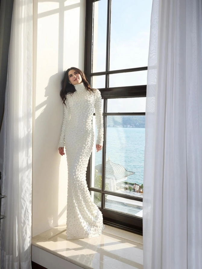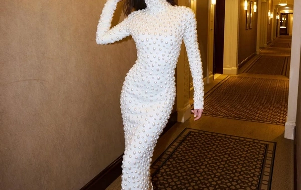 Aktrisa ağ mötəbər tədbirlərdən birinə qatılarkən özünə zərif və ağ rəngli uzun geyim seçib.