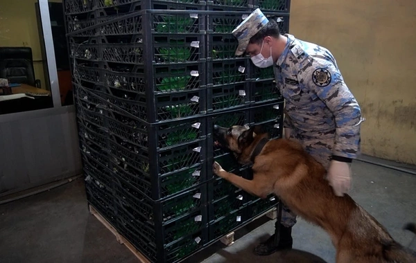 Stasionar rentgen qurğusunda aparılan baxış zamanı şübhəli cizgilər müşahidə edildiyindən yük avtomobili kinoloji xidmət itinin tətbiqi ilə ətraflı gömrük yoxlamasından keçirilib. Nəticədə nəqliyyat vasitəsindəki iki paletdə gömrük nəzarətindən gizlədilən narkotik vasitələr aşkarlanıb.