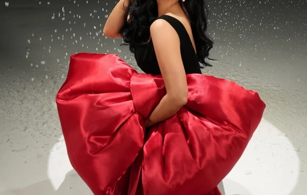 Vüsalə fotosessiyası zamanı aksessuar olaraq böyük bantikdən istifadə edib.