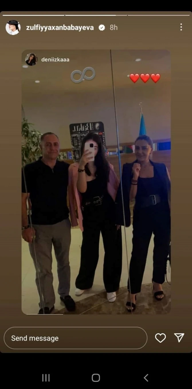 Xatırladaq ki, Zülfiyyə Xanbabayevanın həyat yoldaşı Zaur Məmmədov "Simurq" futbol klubunun keçmiş prezidenti olub. Xalq artistinin qızı Dəniz bir neçə həftə əvvəl orta məktəbdən məzun olub.