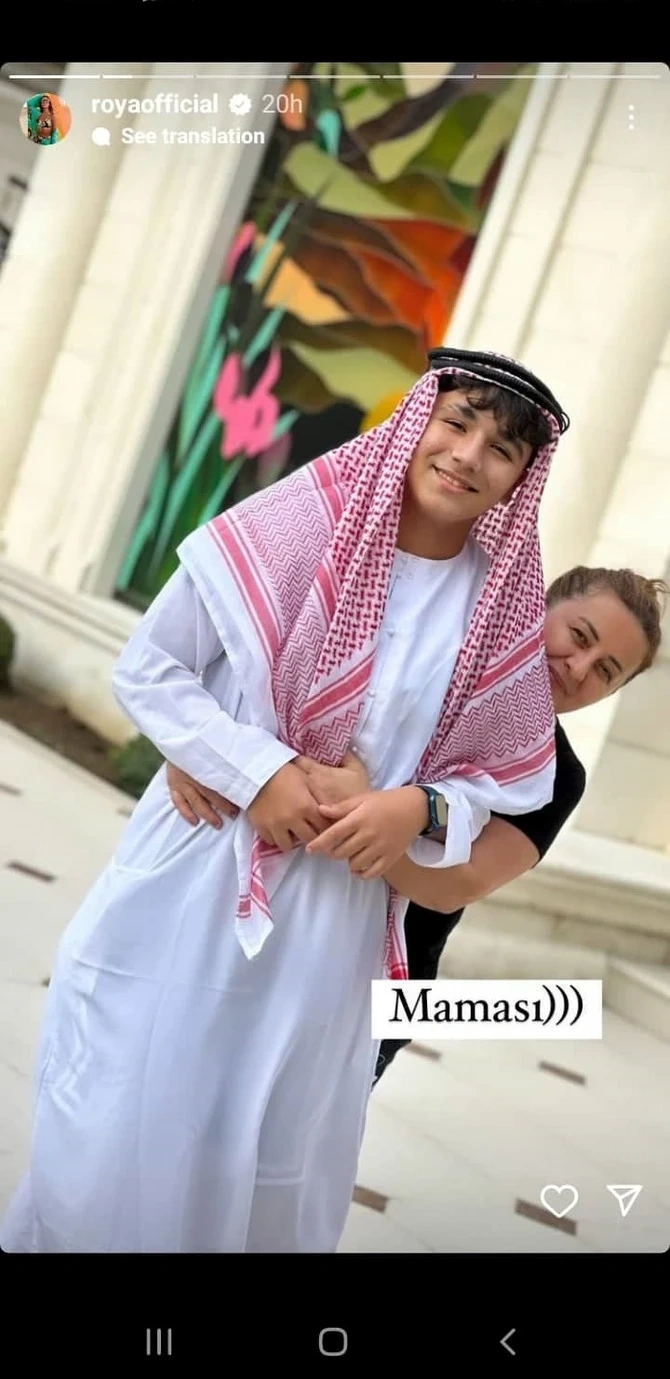 Fotolarda Hüseyn geyimi ilə diqqət çəkib. O, Yaxın Şərq ölkələrində istifadə olunan kişi geyimində olub. Röyanın paylaşımı instaqram izləyiciləri tərəfindən maraqla qarşılanıb. Onun oğlu ilə olan fotolarına minlərlə bəyənmə gəlib, çoxsaylı şərhlər yazılıb.
