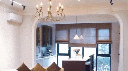 Evin dizaynında açıq sarı və qızılı, eyni zamanda da ağ tonlara üstünlük verilib.