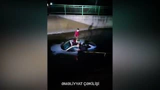 Avtomobil kanala aşdı: İkisi azyaşlı olmaqla dörd nəfərin XİLASEDİLMƏ GÖRÜNTÜLƏRİ