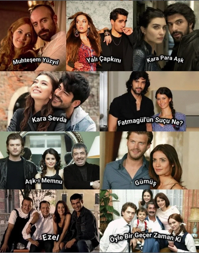 Bunlar "Muhteşem Yüzyıl", "Yalı Çapkını", "Kara Para Aşk", "Kara Sevda", "Fatmagül"ün Suçu Ne?", "Aşk-ı Memnu", "Gümüş", "Ezel" və "Öyle Bir Geçer Zaman Ki..." seriallarıdır.