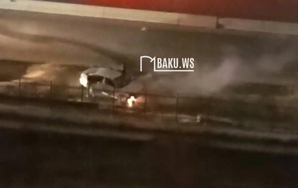 Lökbatanda qəzaya uğrayan maşın YANDI