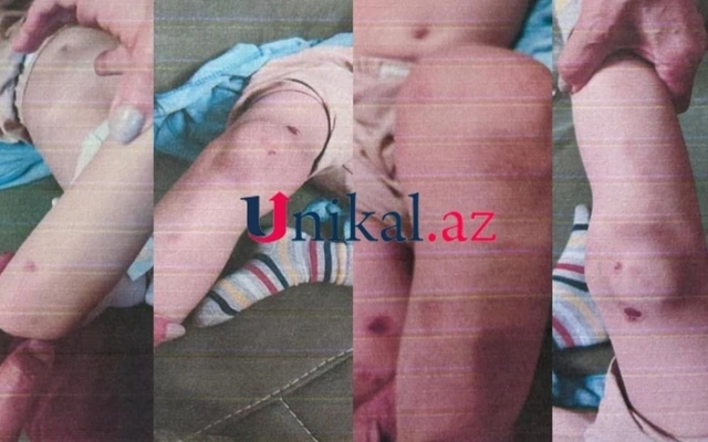 "Keçirilmiş ekspertizaların nəticəsinə əsasən, köməksiz vəziyyətdə olan azyaşlıda travmadan sonra stres pozuntusu yaranıb, həmçinin sağ diz oynağı nahiyəsinin yumşaq toxumalarının əzilmiş yarası və sıyrığı ilə əlaqədar diz oynağında hərəkət funksiyasının nisbi pozulması, sol diz oynağında küt əşyanın təsirindən əmələ gəlmiş qançırlar qeydə alınıb".