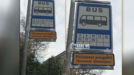 Bildirilib ki, söhbət Parlament prospektində yerləşən avtobus dayanacağından gedir. Məlumata görə, dayanacağa quraşdırılmış, avtobusların nömrəsini və hərəkət istiqamətini göstərən tablo qoparaq sallanmış vəziyyətdə qalıb.