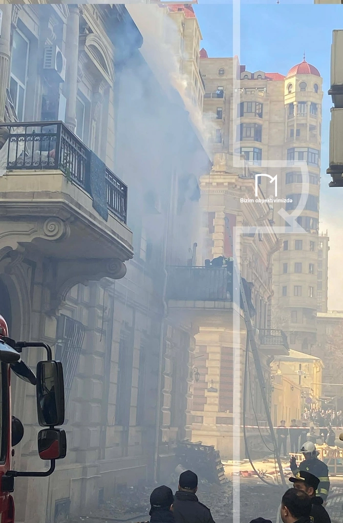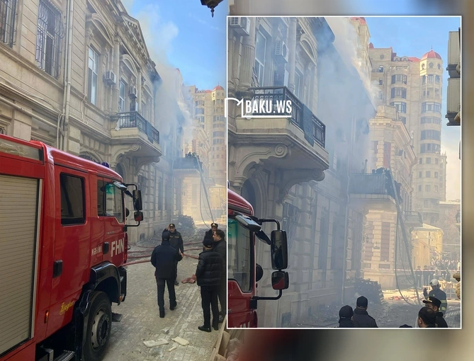 Bakıda binada başlayan güclü yanğının söndürülməsi istiqamətində işlər aparılır.