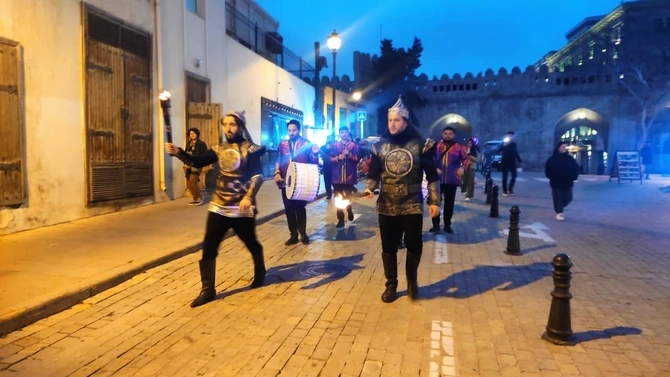 BAKU.WS xəbər verir ki, Şirvanşahlar meydanından Qız Qalasına qədər cəngavərlərin, davulçularım müşaiyəti ilə yürüş keçirilib.